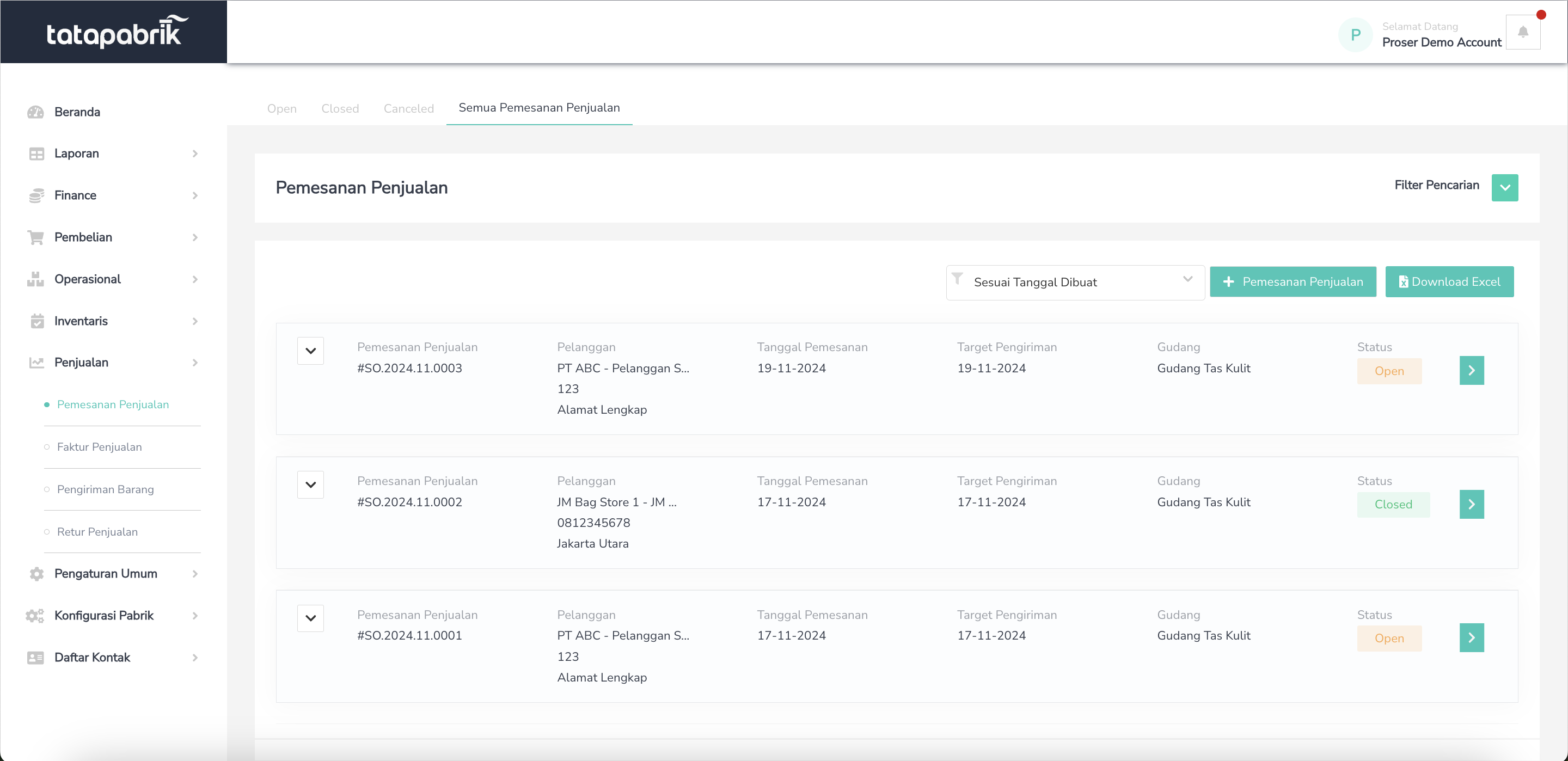 Pemesanan Penjualan
